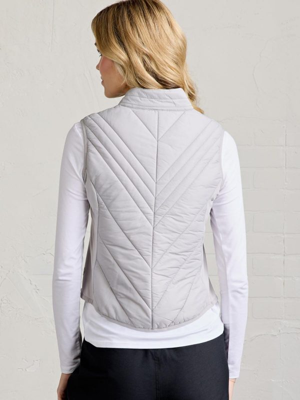 Sophistication Meets Sport – Meet the NEW Release Hybrid Vest. Swing with style and comfort – this layer is made for the course and beyond, offering a sleek silhouette and exceptional performance. The soft woven body and lightweight quilt fill provide optimal comfort without sacrificing warmth. Sleek knit side panels ensure maximum mobility for a wide range of activities. The slightly curved bottom hem and flattering semi-fit create a polished look that’s totally versatile – perfect for golf, tennis, and effortlessly transitions from workouts to casual outings. Style #TW965